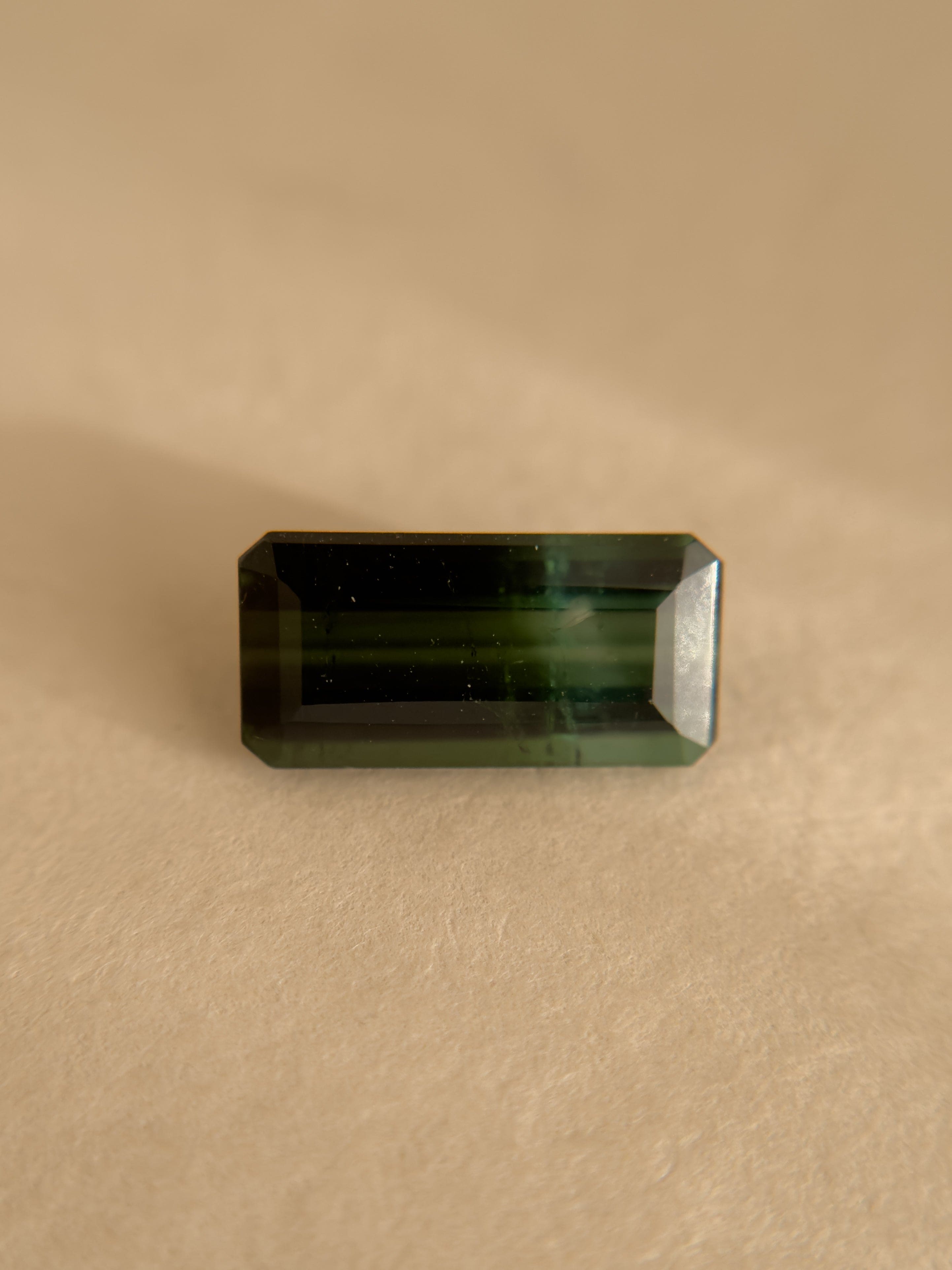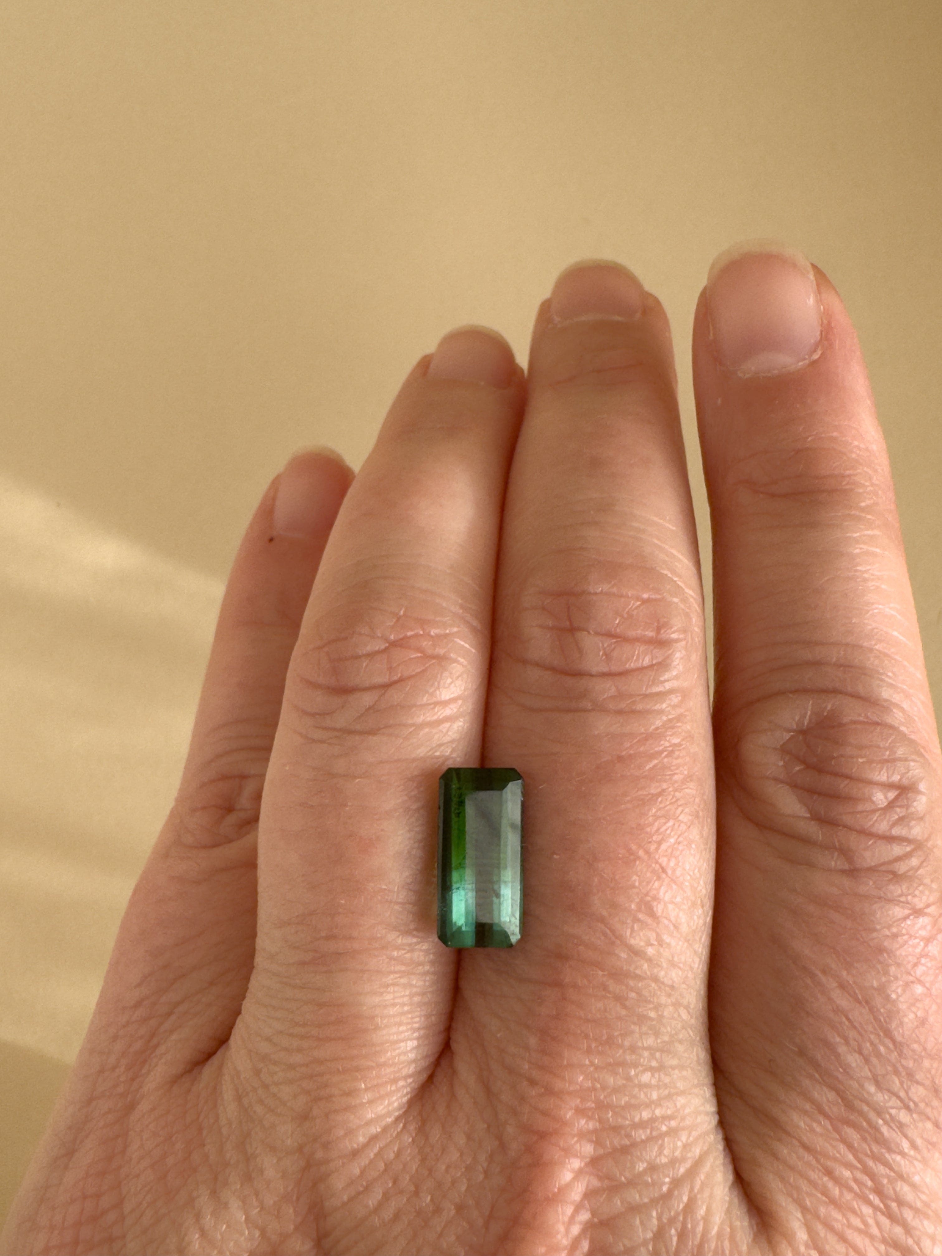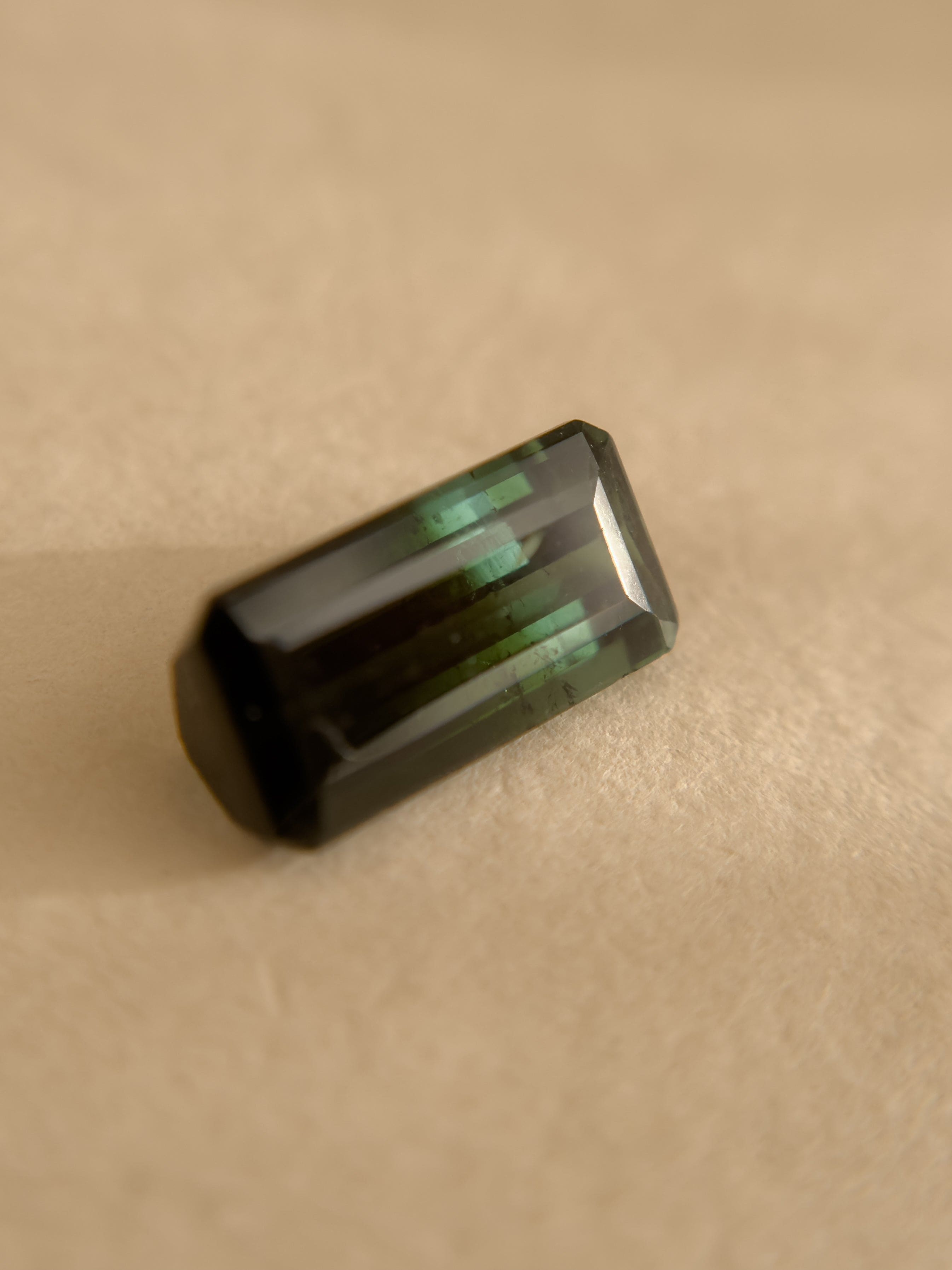 Understory is a natural green tourmaline shaped in an emerald cut, chosen for its quiet depth and structural beauty. Its color recalls the shaded world beneath the forest canopy — where moss, ferns, and new growth thrive in filtered light. Capture its radiance in a custom piece of your making.