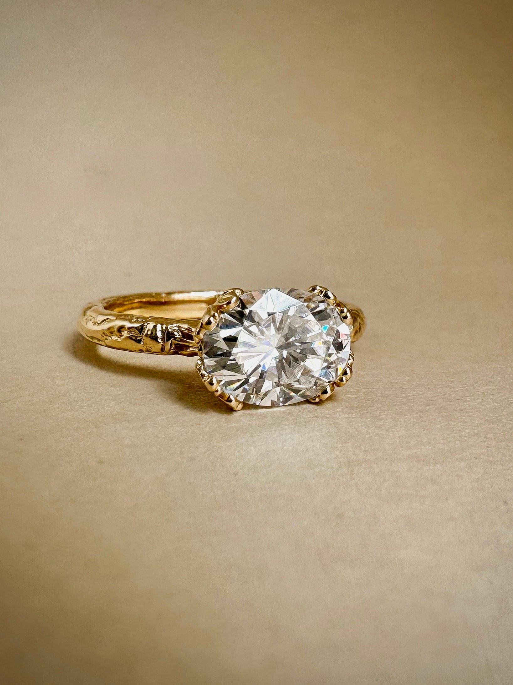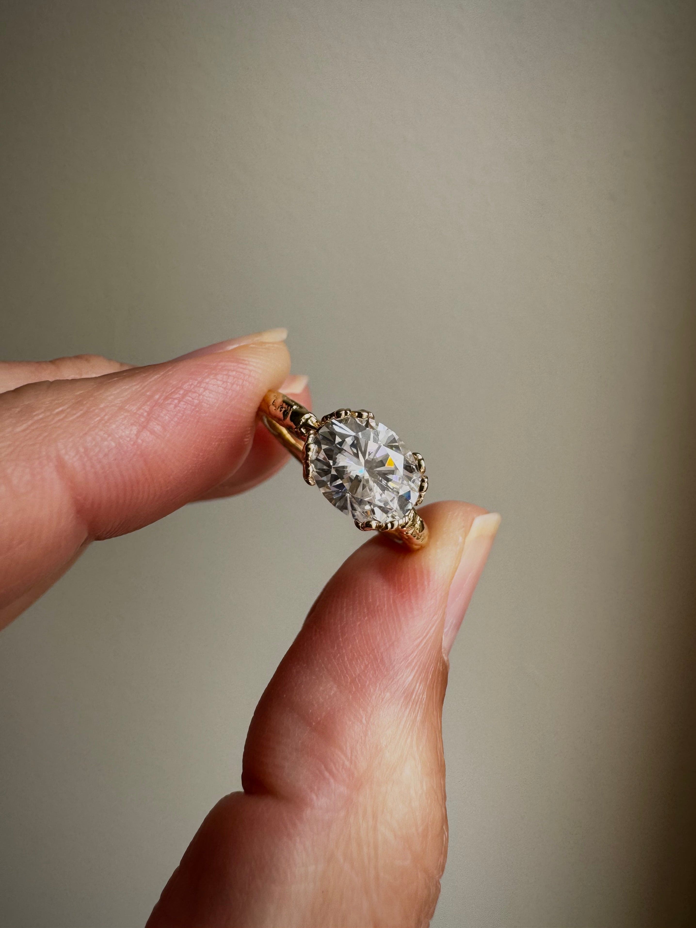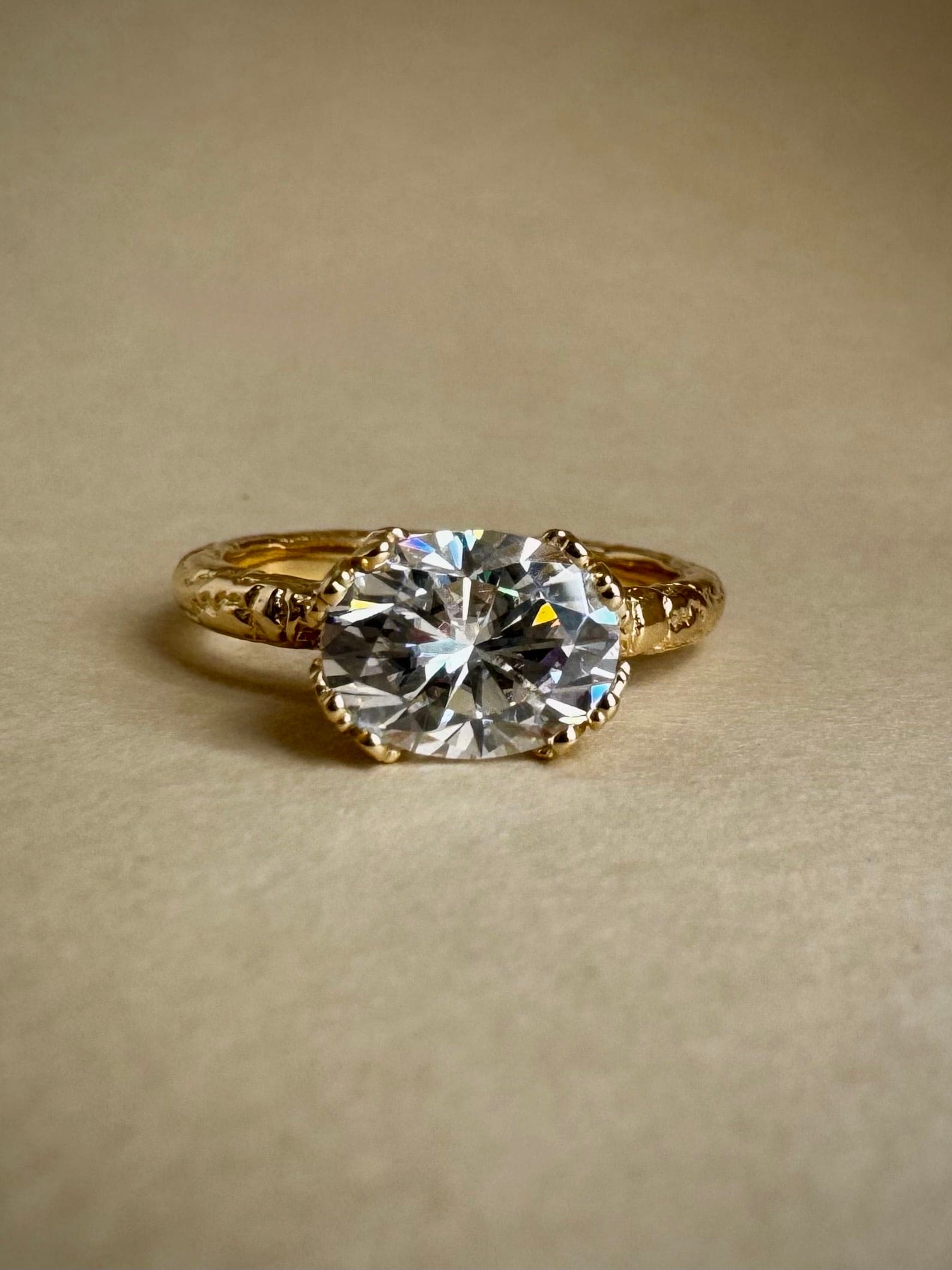 14K Yellow Gold, Oval Moissanite.